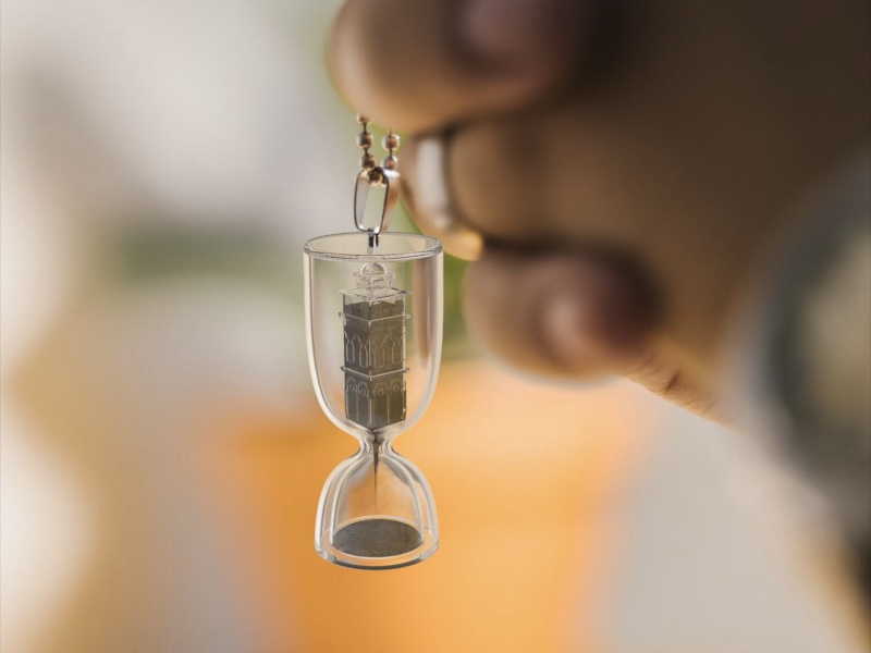 The team envisions that the hourglass could be enlarged and placed in a public square like a sculpture, so that people can mourn simultaneously to resonate with the same emotion. The students say it could also be made into a smaller size, like for key pendants, which would be easier for people to carry as a symbol of their yearning for peace.