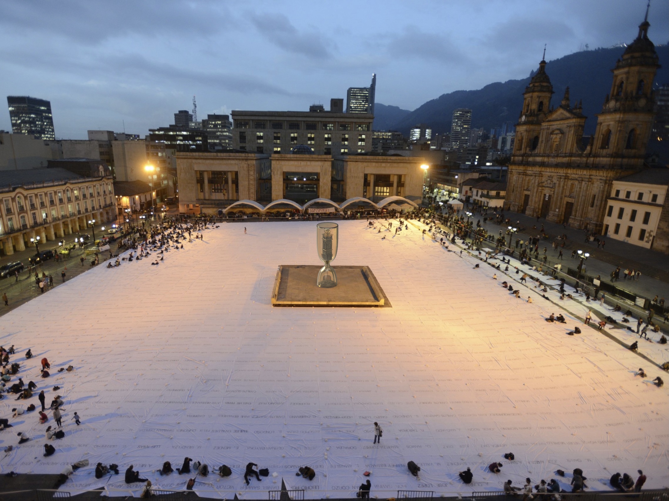 The granular materials in the hourglass are those found in Aleppo’s construction waste.