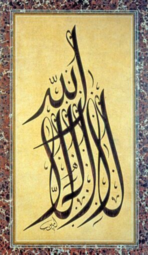 Эти фразы исповедания веры представляют собой основополагающую часть исламского искусства, украшая мечети, религиозные сооружения и художественные творения. Они служит визуальным и вербальным выражением веры в единство Аллаха и пророческую миссию Мухаммада (мир ему).