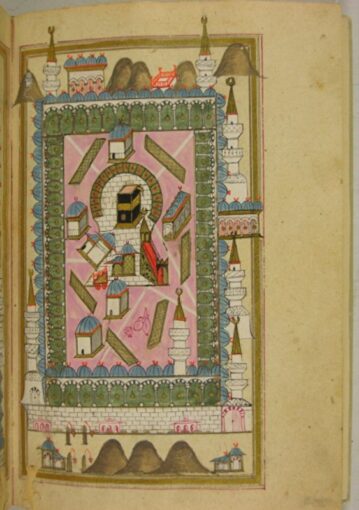 Среди трудов с иллюстрациями Каабы также можно выделить «Далаиль аль-хайрат», созданную марокканским ученым и суфийским шейхом Мухаммадом аль-Джазули (ум. в 1465 г.). По сути, это сборник молитв и благословений для Пророка Мухаммада (мир ему), но его разворот было принято украшать изображениями Мекки и Медины. «Далаиль аль-хайрат» был одним из самых распространенных в исламском мире трудов. По его многочисленным копиям можно проследить эволюцию изменения стилей в изображении Каабы в разные периоды.