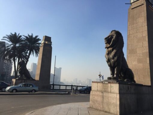 Строительство первого в Каире моста через Нил началось в 1869 году, во время правления хедива Исмаила. Король Фуад I перестроил этот мост в центре города 59 лет спустя и открыл его в 1933 году. Четыре бронзовые статуи львов, ставшие его визитной карточкой, изначально были созданы французским скульптором Анри Альфредом Жакменом для зоопарка в Гизе.